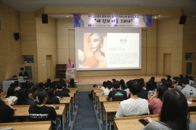 바디페인팅을 통해 시각적 착시를 일으키는 메이크업 아트를 통해 세계적인 일루전(Illusion) 아티스트 윤다인 작가가 7일 오후 건양대학교(총장 김용하) 창의융합캠퍼스를 방문해 <내 안의 나를 그리다>라는 주제로 지역 고교생 및 건양대 재학생들을 대상으로 특강을 진행했다.