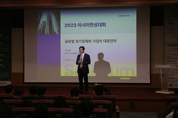 기초자치단체로는 처음으로 충남 논산에서 8일부터 10일까지 2023 아시아 한상대회가 열리는 가운데 이 행사의 일환으로 9일 오후 건양대학교(총장 김용하) 창의융합캠퍼스 명곡정보관 6층 무궁화장홀에서 ‘글로벌 경기 침체에 대한 대응 방안’을 주제로 특강이 진행됐다.