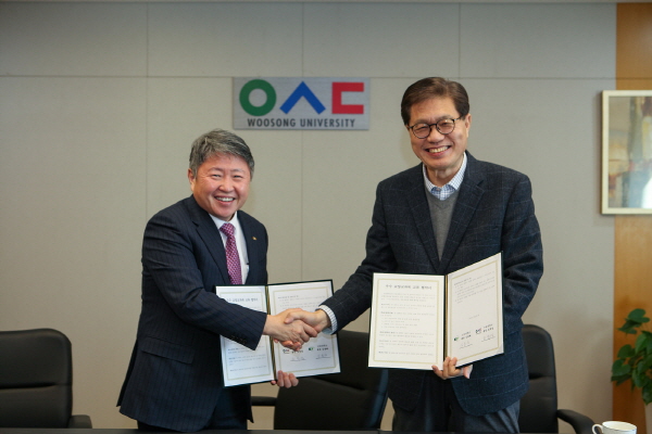 이날 협약식에는 건양대 김용하 총장, 이종형 교무처장, 김용석 AISW 융합대학장, 박은희 휴머니티칼리지학장과 우송대 오덕성 총장, 손동현 우송교양대학장, 이지은 우송교양부학장 등이 참석했다.