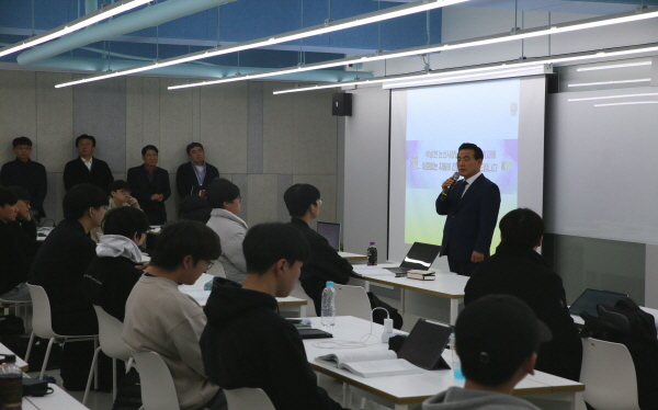 백성현 논산시장이 25일 건양대학교(총장 김용하) 논산 창의융합캠퍼스 반도체공학과(학과장 권택원)를 방문해 24학년도 신입생들과 간담회를 진행했다.