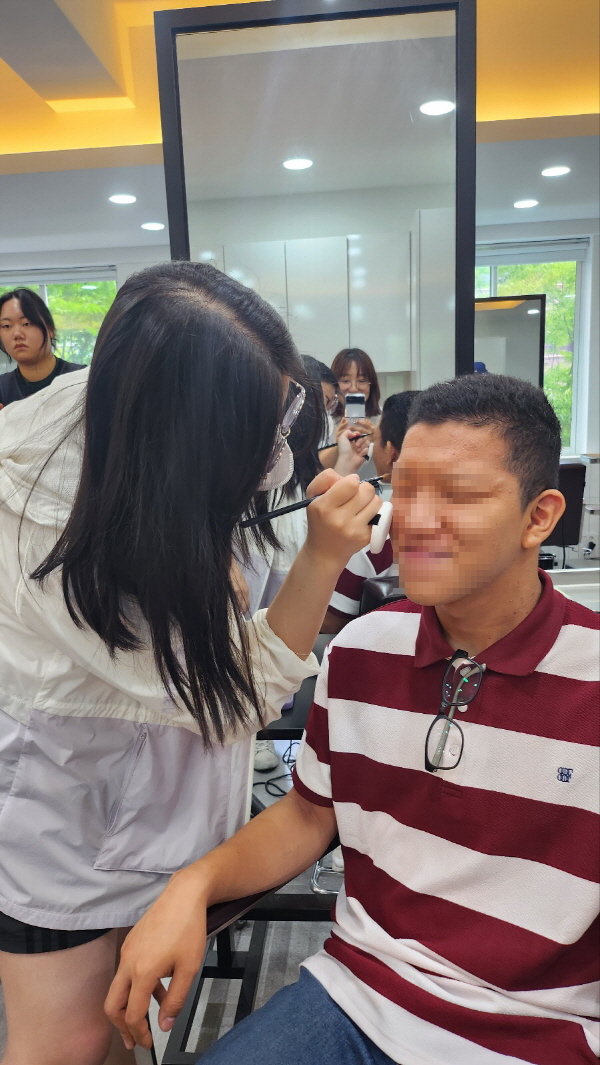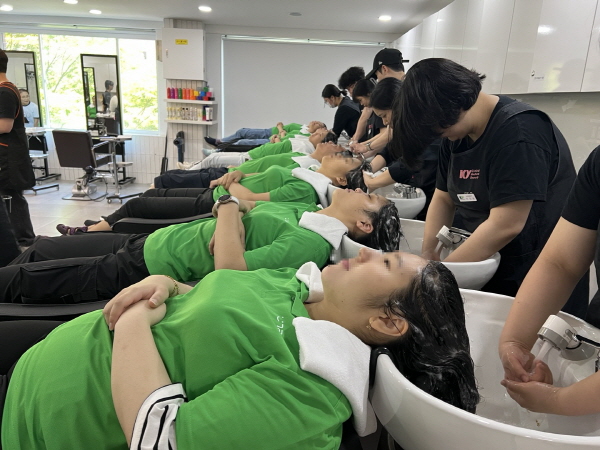 건양대 글로벌의료뷰티학과, 발달장애 청년직원들에게 두피건강테라피 봉사활동