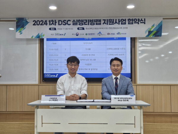 왼쪽부터 건양대 물리치료학과 박대성 교수, DSC RIP 대학교육혁신본부 이주욱 센터장.jpeg