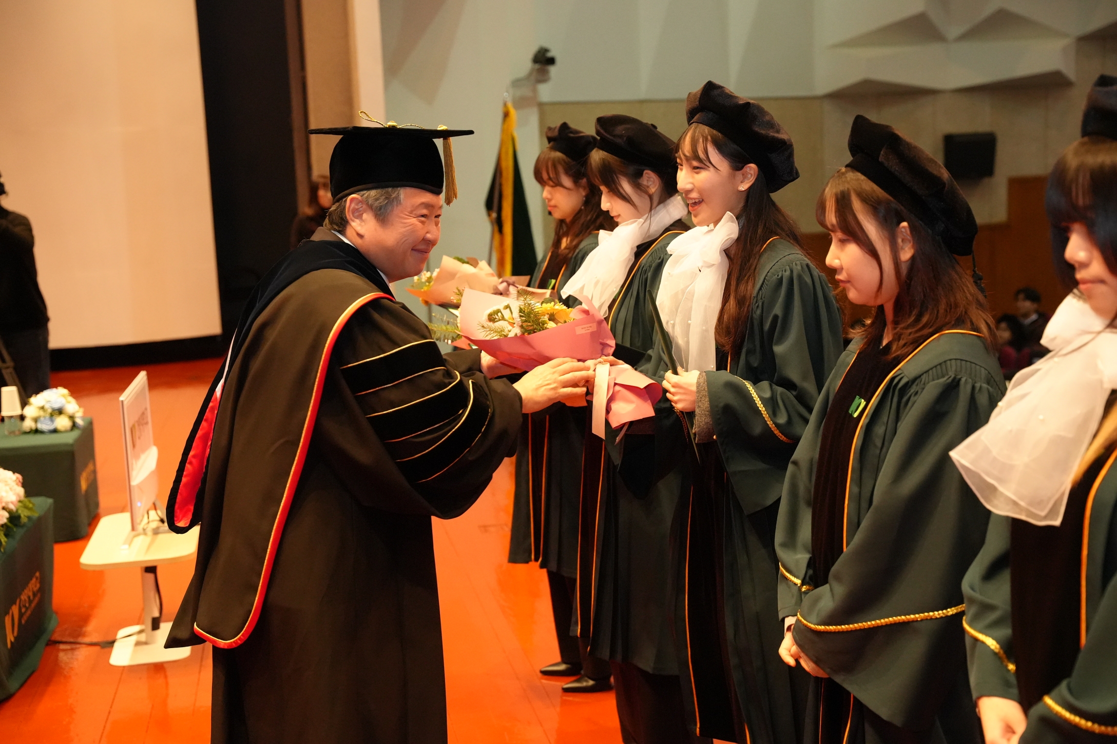 한편, 김희수 명예총장은 석박사 학위 수여자들을 직접 축하했으며, 학부 졸업생들과 기념사진을 촬영하는 등 학생들과 활발히 소통하며 큰 인기를 끌었다.