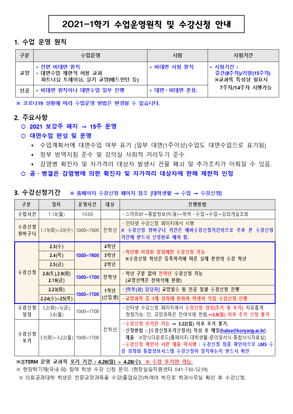 | 제목 | 2021-1학기 수강신청 일정 안내 | ||||