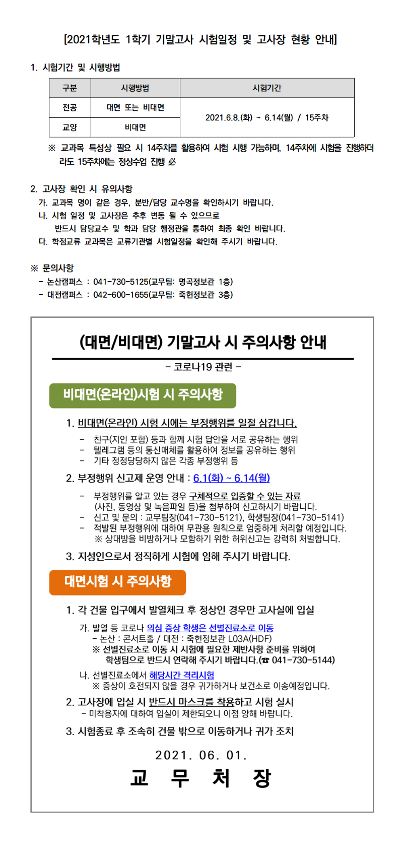 | 제목 | 2021학년도 1학기 기말고사 시험 일정 안내 | ||||