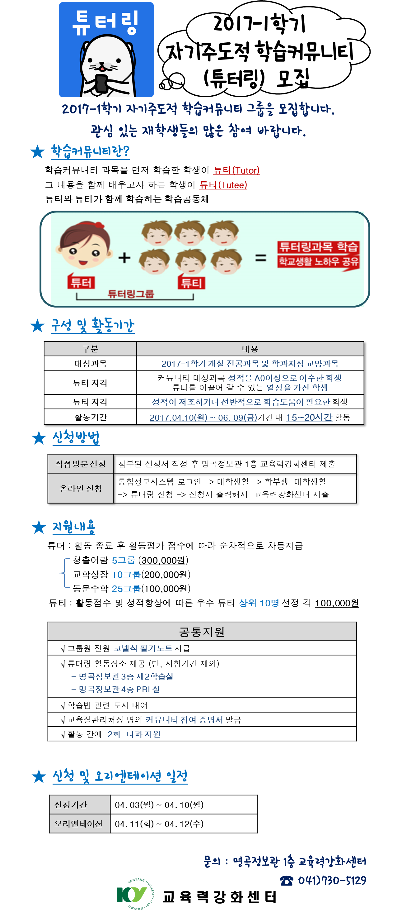 | 제목 | 2017-1학기 자기주도적 학습커뮤니티(튜터링) 모집안내 | ||||