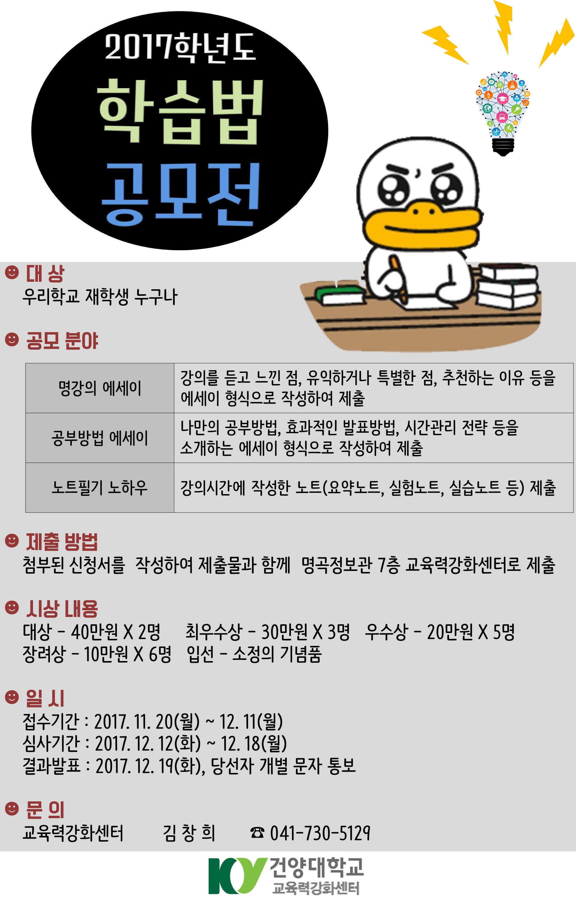 | 제목 | 2017학년도 학습법 공모전 모집 안내 | ||||