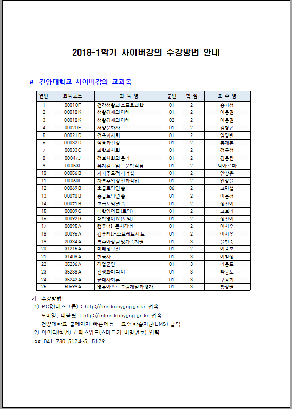 | 제목 | 2018-1학기 사이버강의 수강방법 안내 | ||||