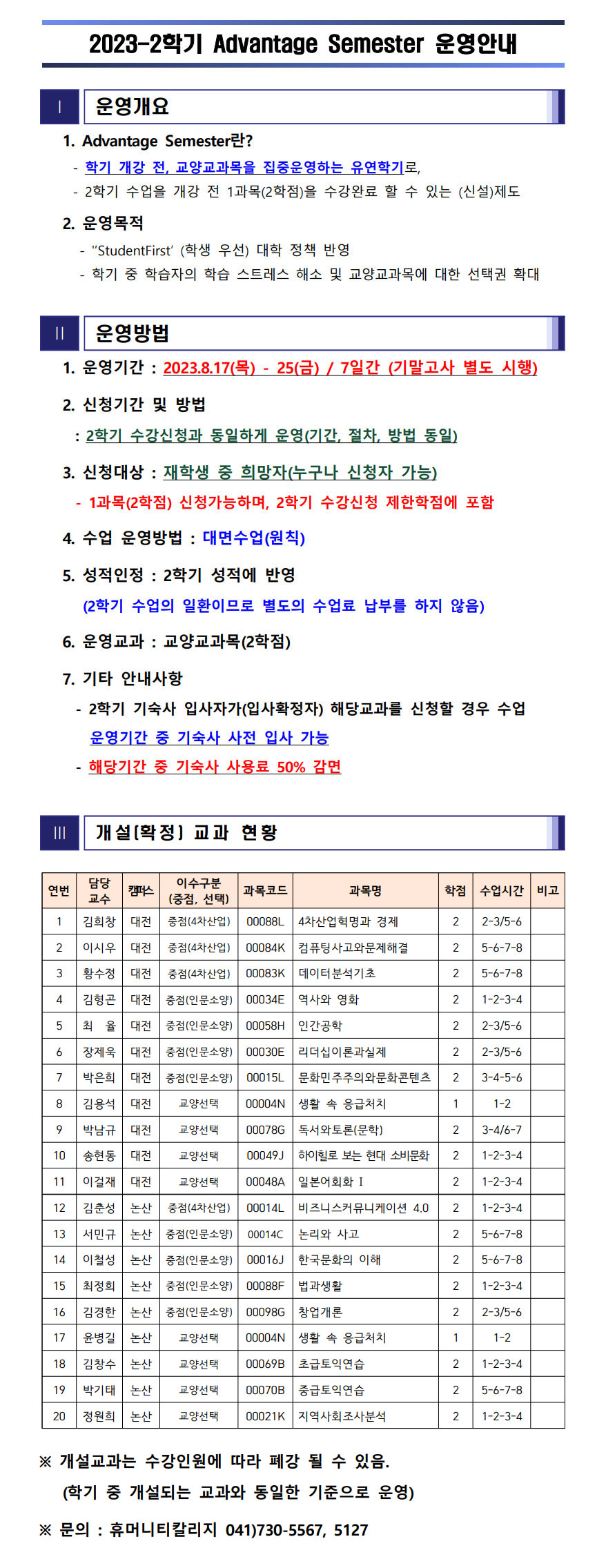 | 제목 | [수정] 2023-2학기 Advantage Semester 운영안내 | ||||