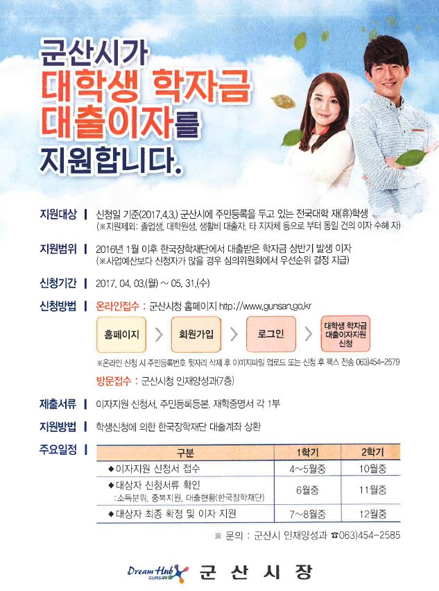 | 제목 | 2017학년도 군산시 학자금 대출이자 지원안내 | ||||