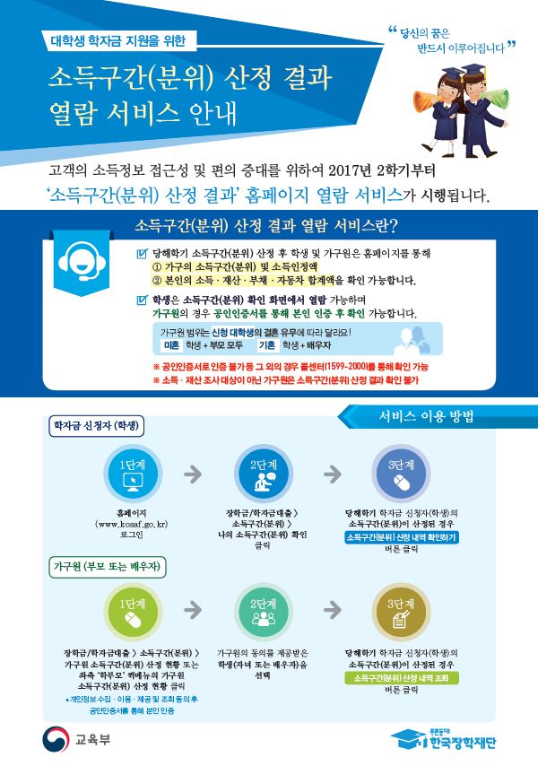 | 제목 | 2017학년도 2학기 소득구간(분위) 산정 결과 열람 서비스 안내 | ||||