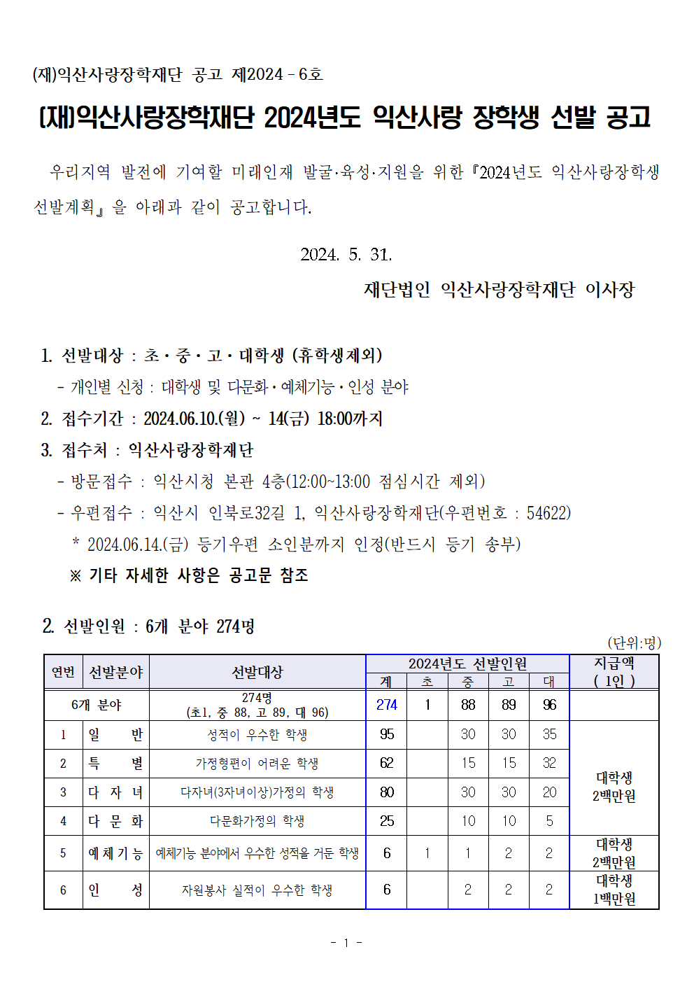 | 제목 | 2024년도 익산사랑 장학생 선발 안내 | ||||