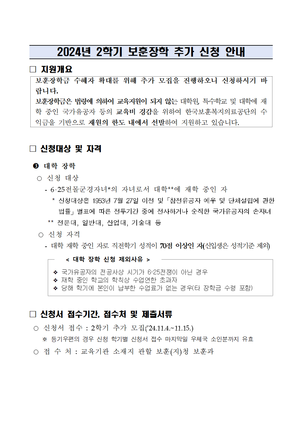| 제목 | 2024년 2학기 보훈장학 추가 신청 안내 | ||||