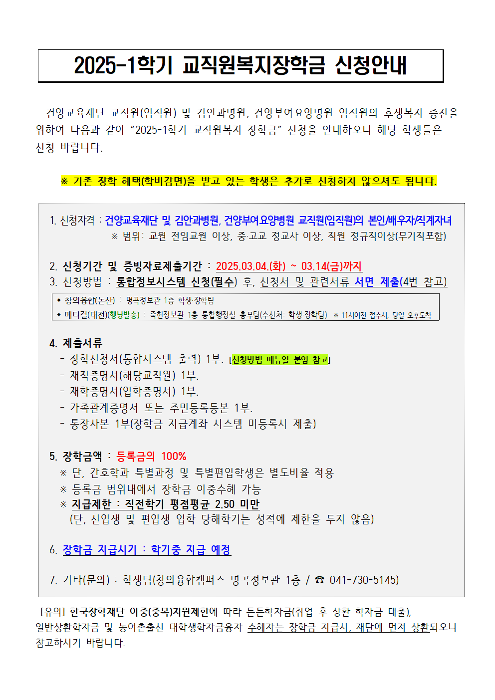 | 제목 | 2025-1학기 교직원복지 장학금 신청안내 | ||||