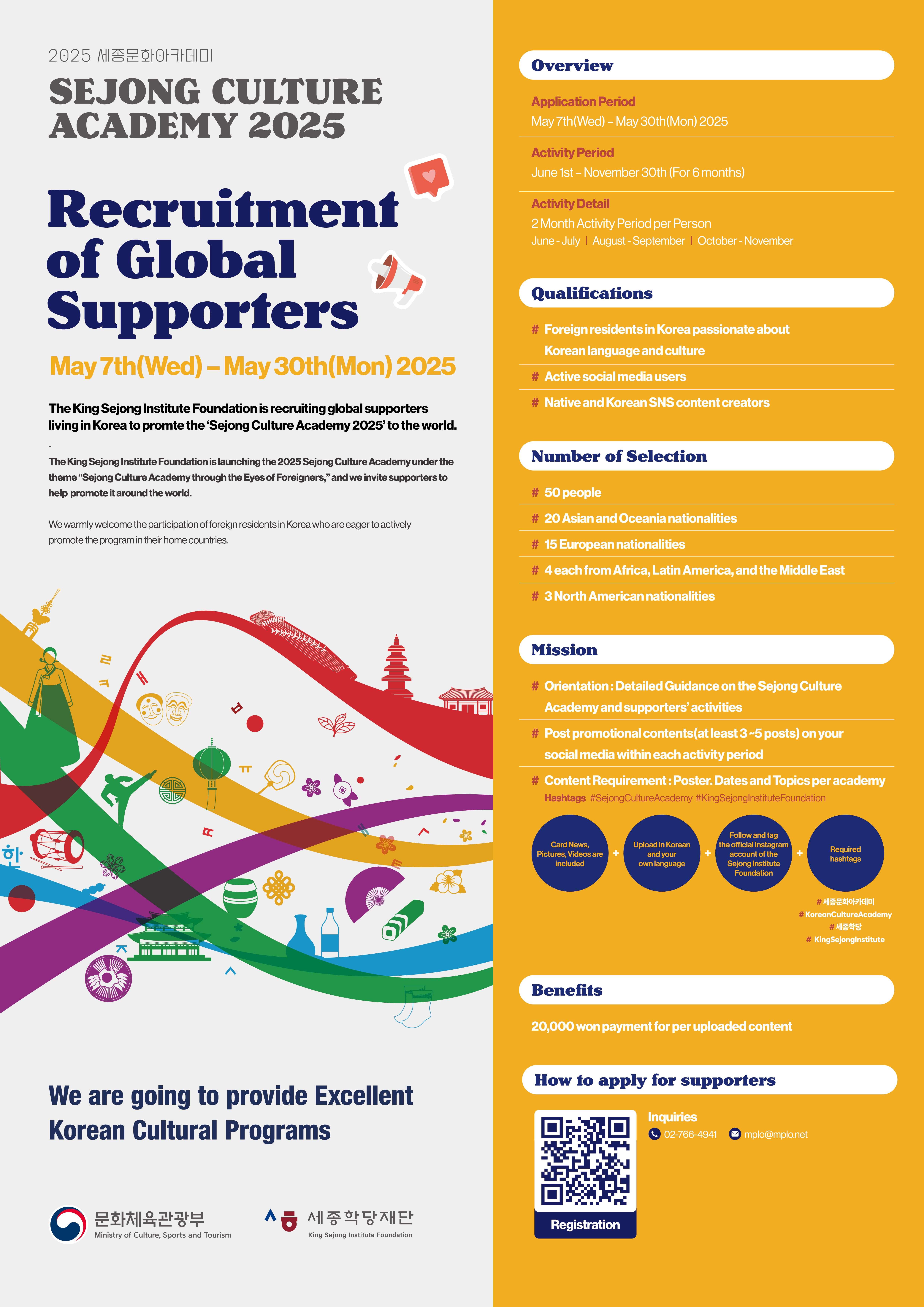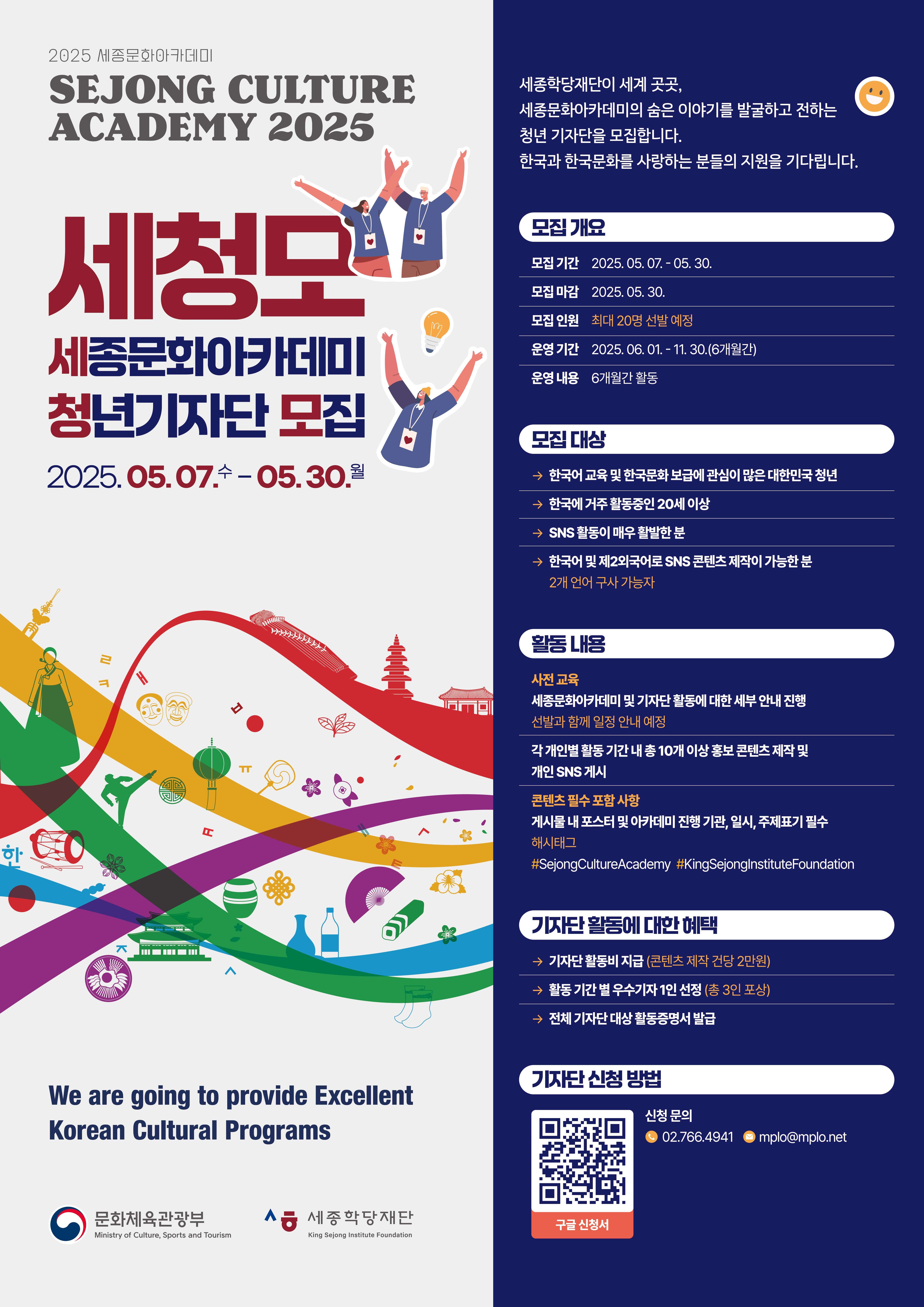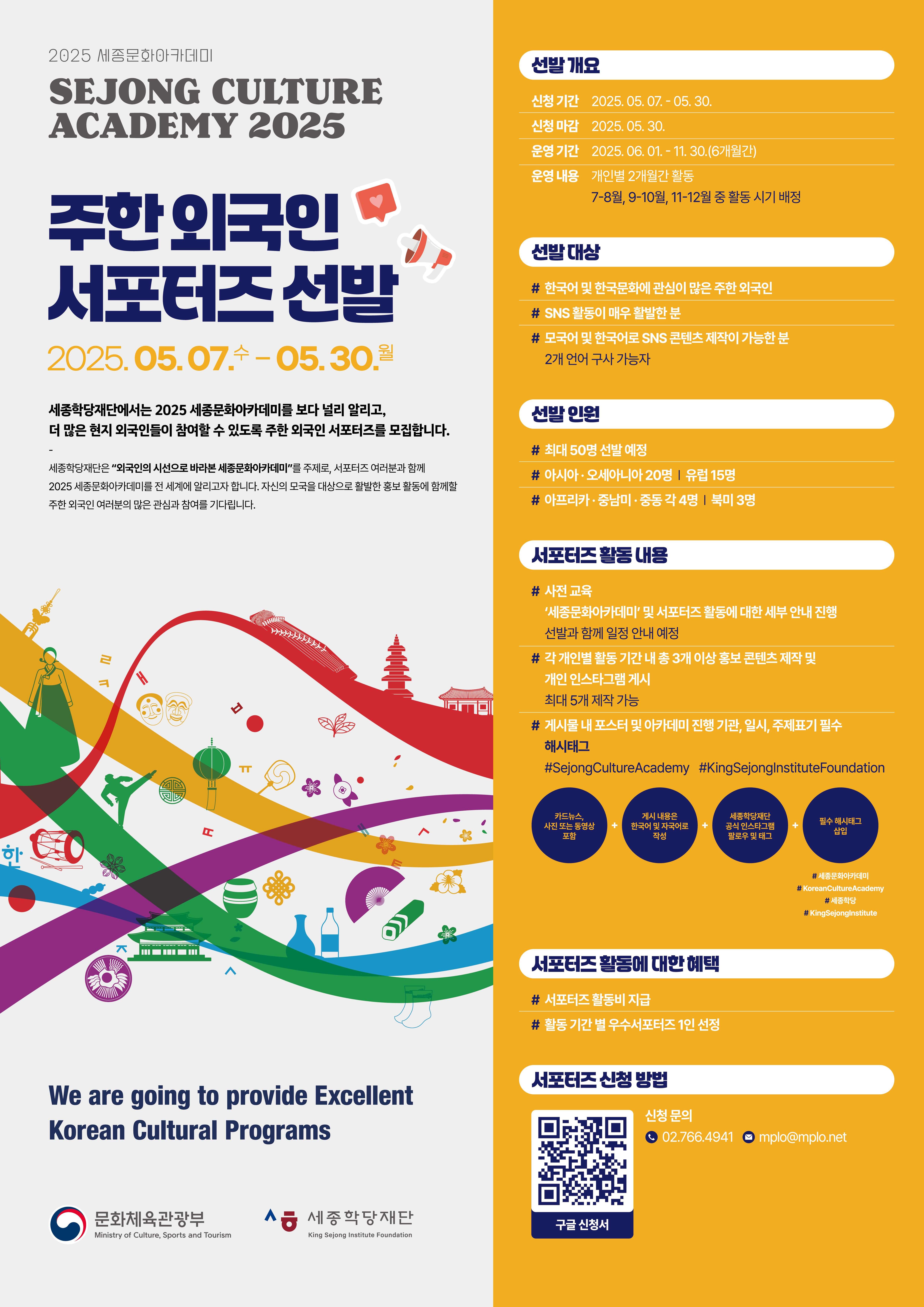 2025 세종문화아카데미 주한 외국인 서포터즈 및 대학생 기자단 모집 홍보 글의 상세내용