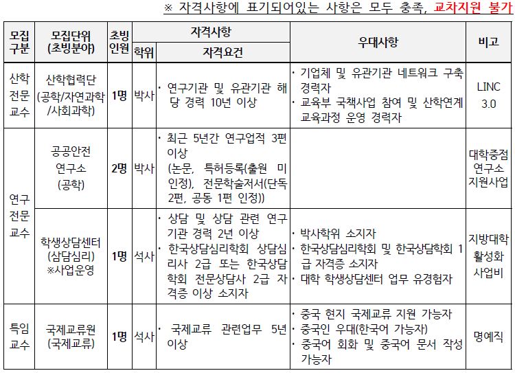 ※ 세부내용은 첨부된 공고문 참조 ※ 위 사항 외 기타 궁금하신 사항은 교원인사팀(☎041-730-5185)으로 연락 주시기 바랍니다. 감사합니다. |