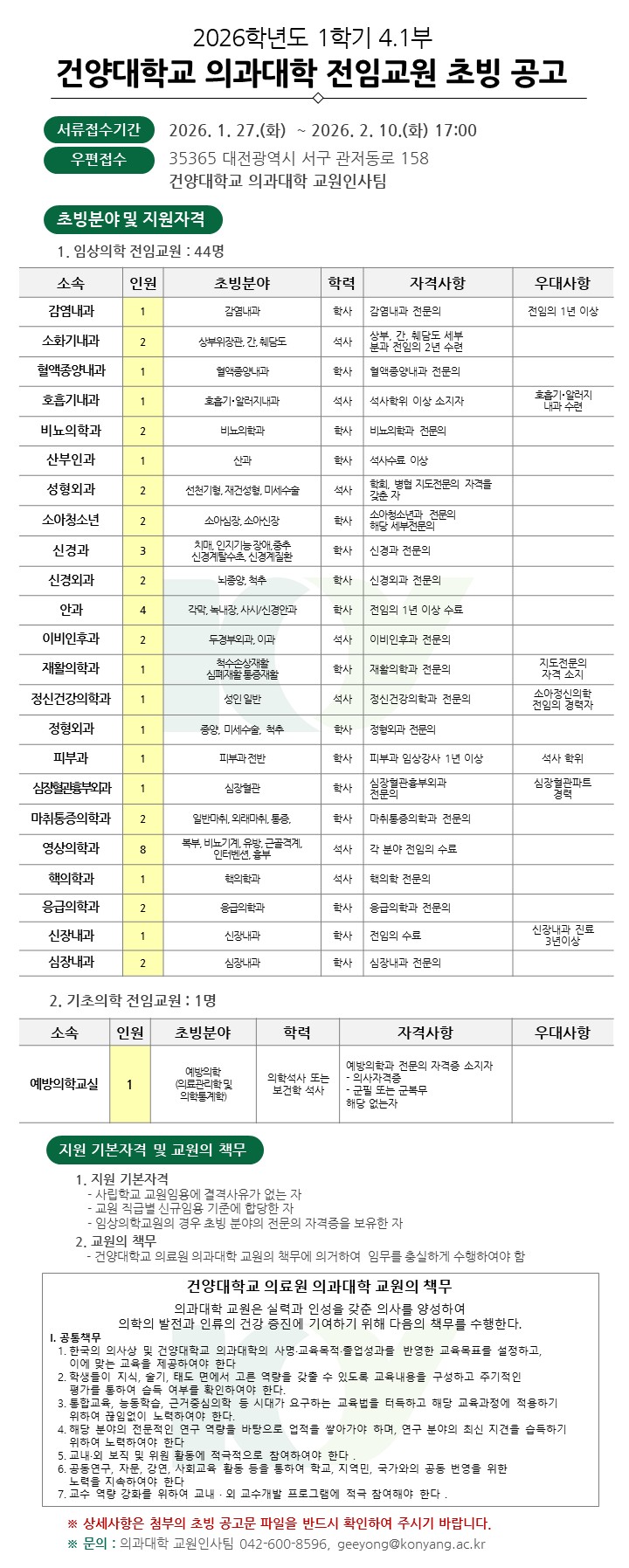 | 작성자 | 의과대학 교원인사팀 | 등록일 | 2026-01-27 | 조회 | 1330 |