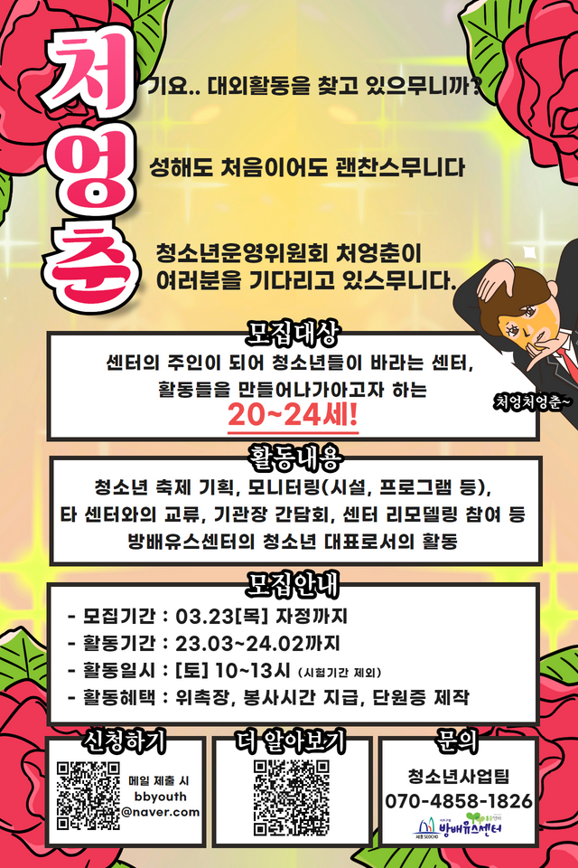 | 제목 | 2023년 청소년운영위원회 '처엉춘' 신규 위원 추가 모집 안내 | ||||
