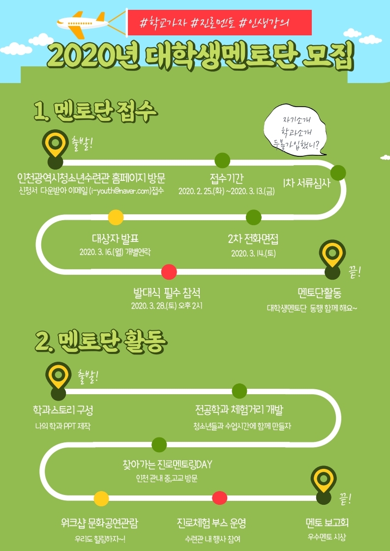 | 제목 | 2020년 인천광역시청소년수련관 대학생멘토단『동행』 모집 안내 | ||||