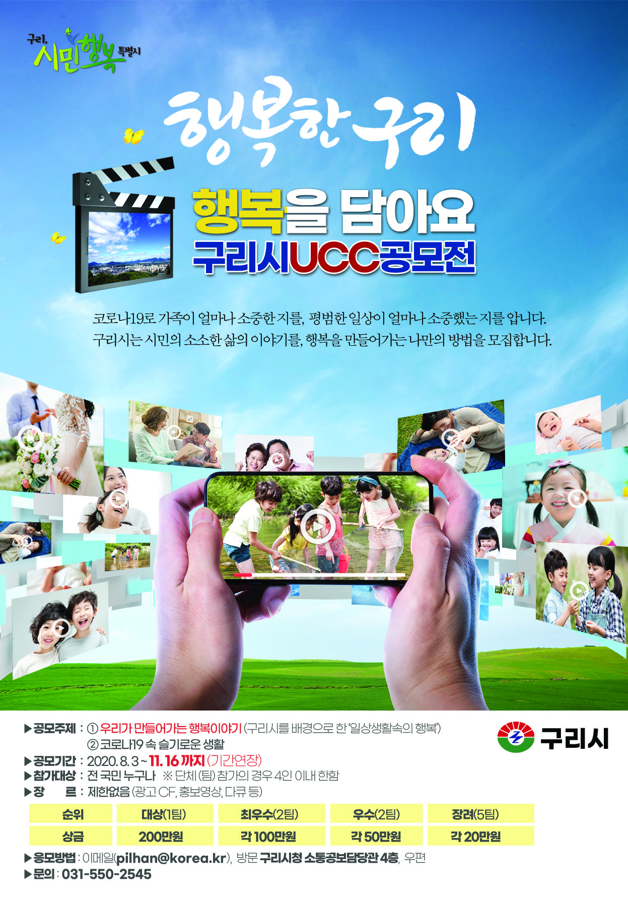 | 제목 | 구리시 시민행복 UCC 공모전 기간 연장안내 | ||||