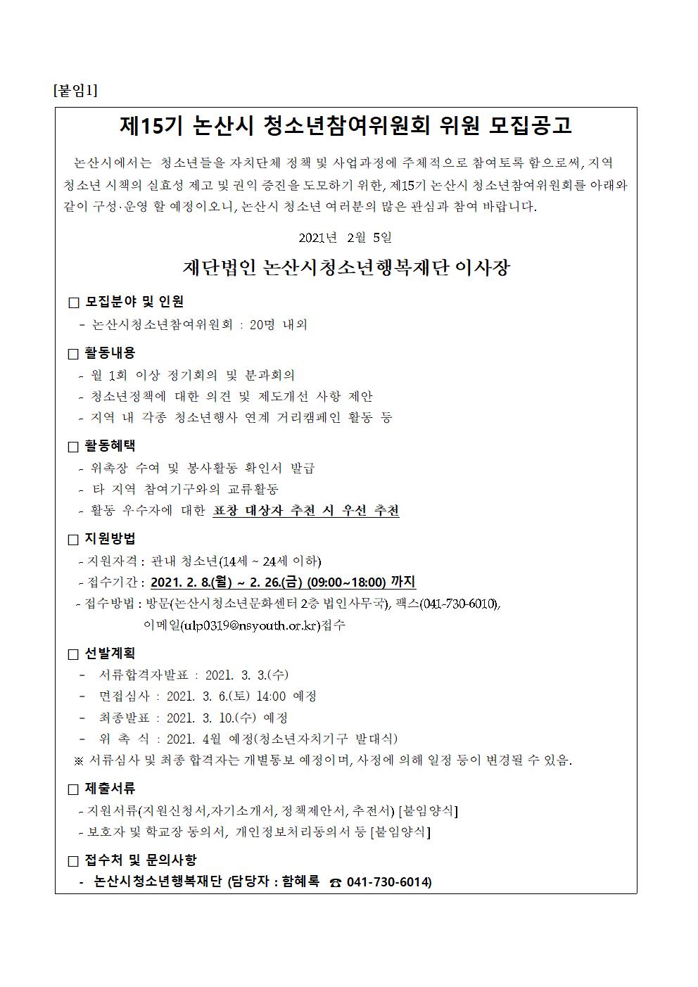 | 제목 | 2021년 논산시 청소년참여위원회 위원 모집안내 | ||||
