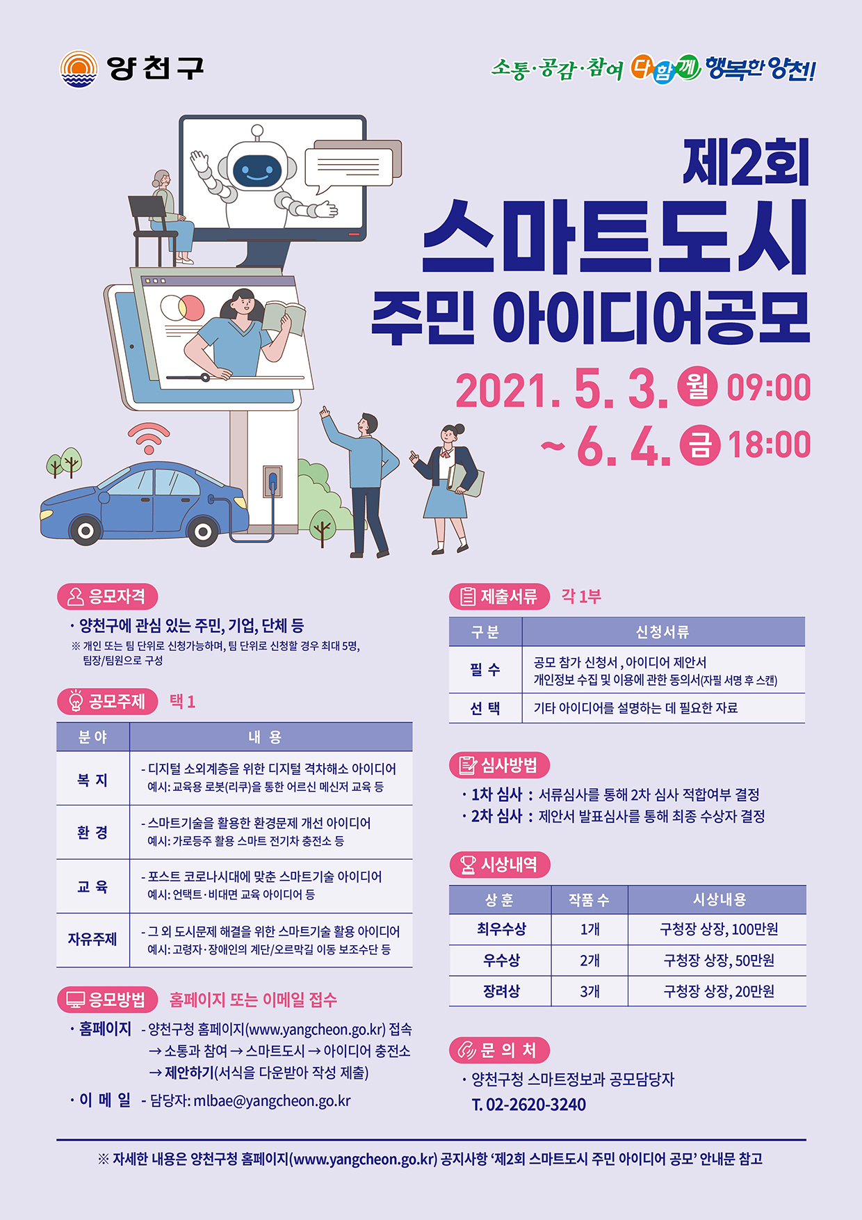 | 제목 | 양천구 「제2회 스마트도시 주민 아이디어 공모」 안내 | ||||