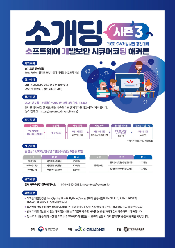 | 제목 | 「제8회 소프트웨어 개발보안 경진대회」 개최 안내 | ||||
