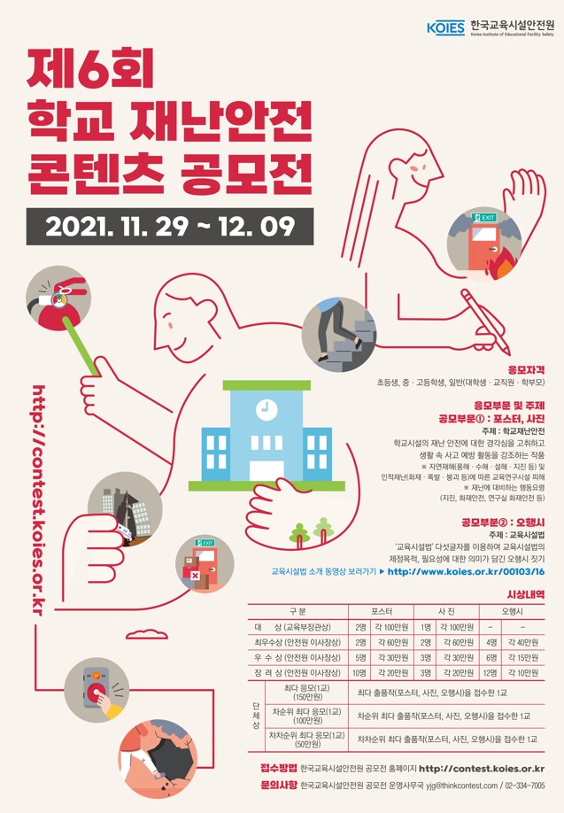 | 제목 | 2021년도 제6회 학교 재난안전 콘텐츠 공모전 안내 | ||||