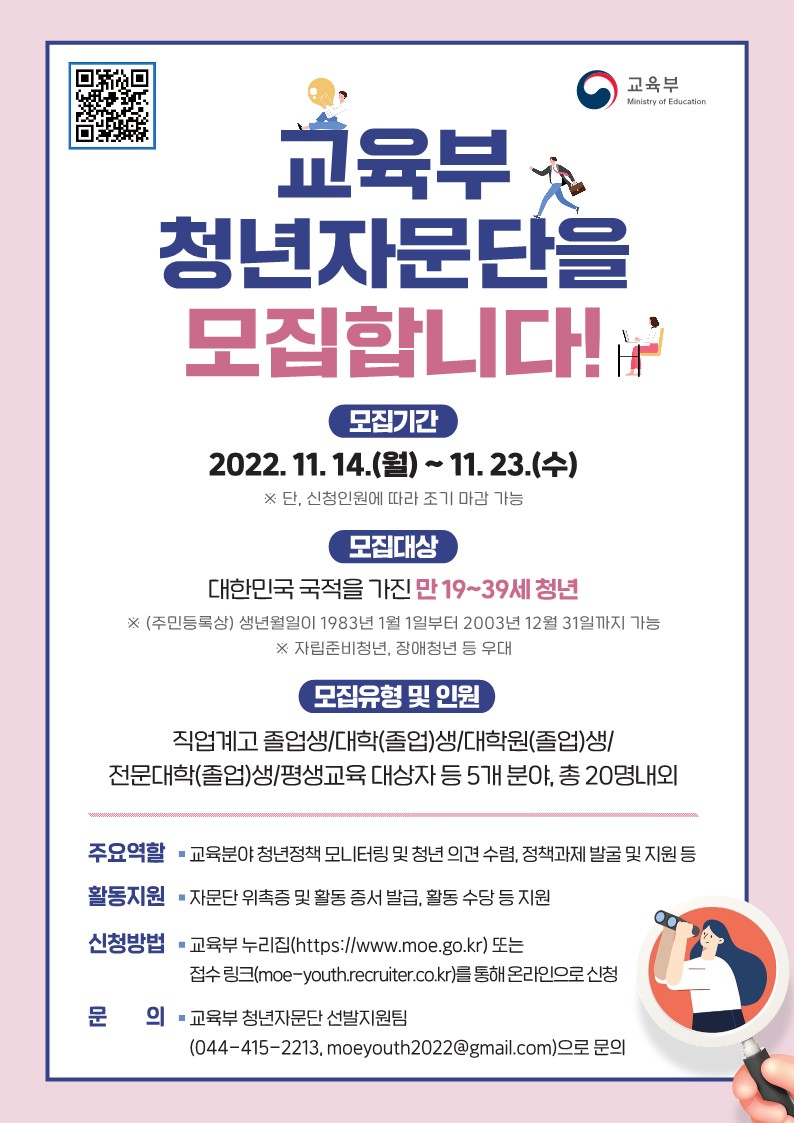 | 제목 | 교육부 청년자문단 공개모집 안내 | ||||