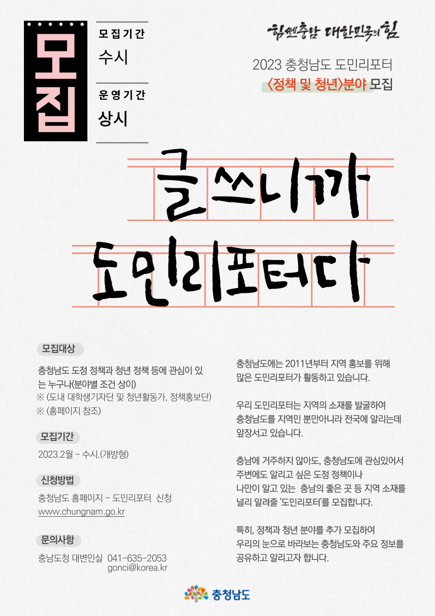 2023_충청남도_도민리포터_모집(정책및청년분야)_홍보_안) (1).hwp