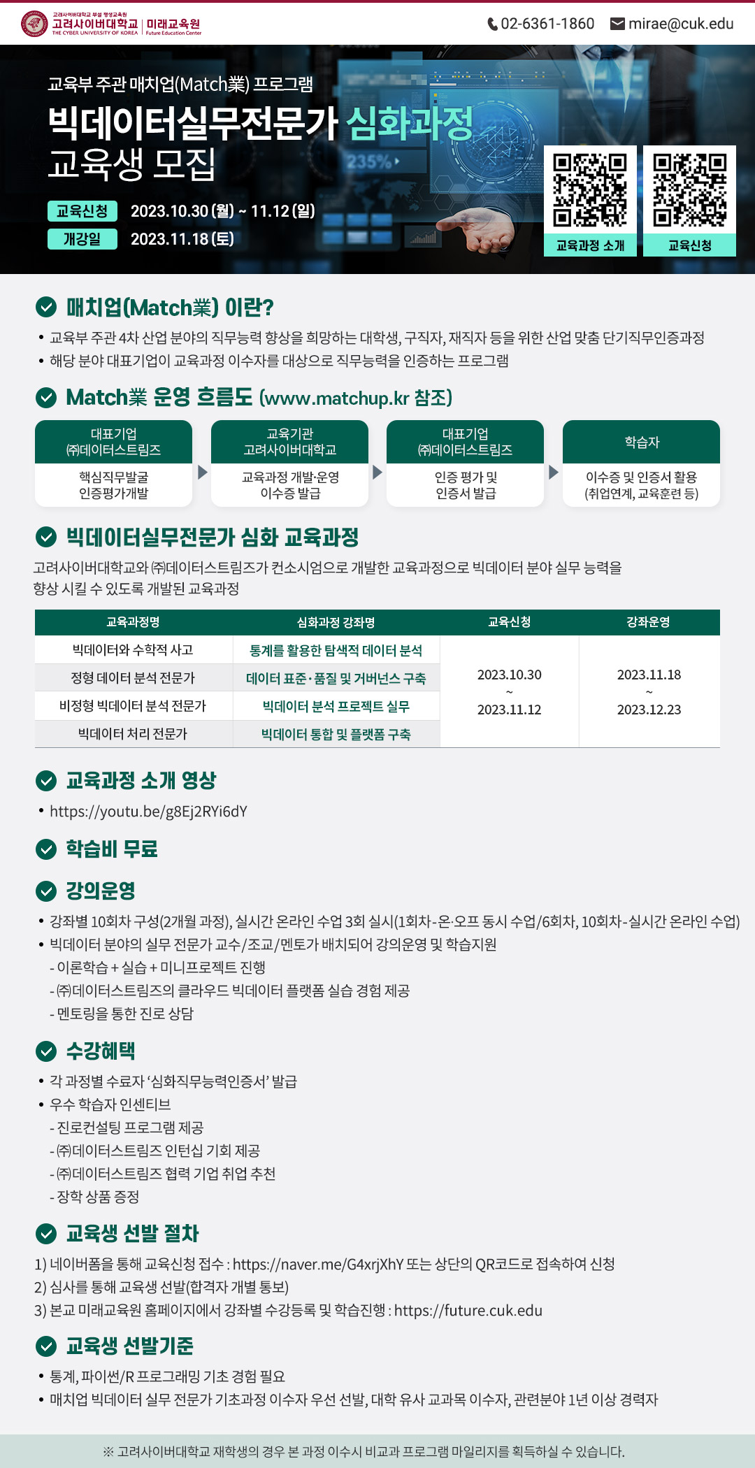 | 제목 | [고려사이버대] Match業(매치업) 빅데이터실무전문가과정 수강안내 | ||||