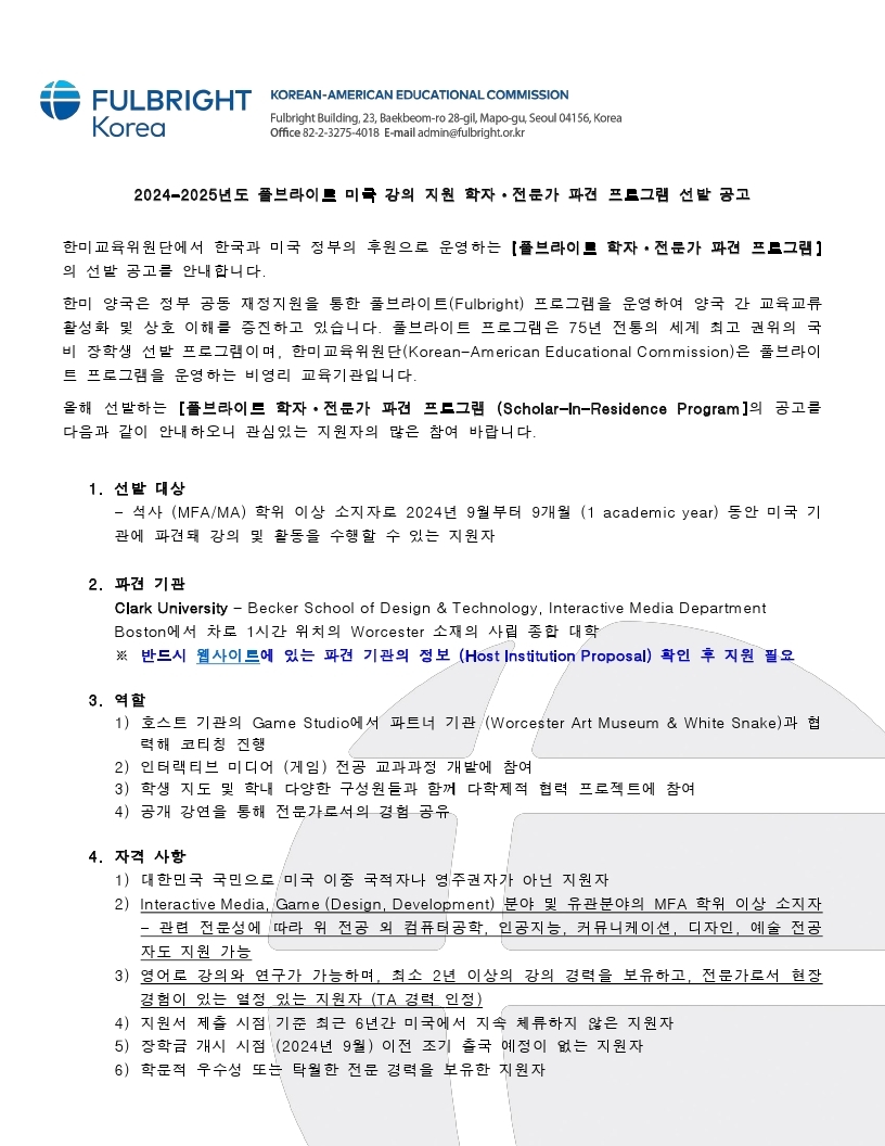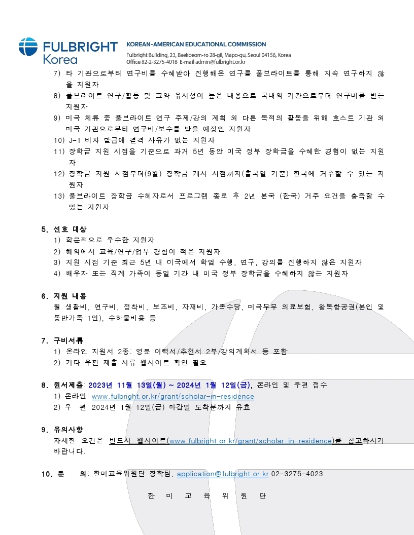 | 제목 | 「한미교육위원단」풀브라이트 미국 강의 지원 학자 전문가 파견 프로그램 안내 | ||||