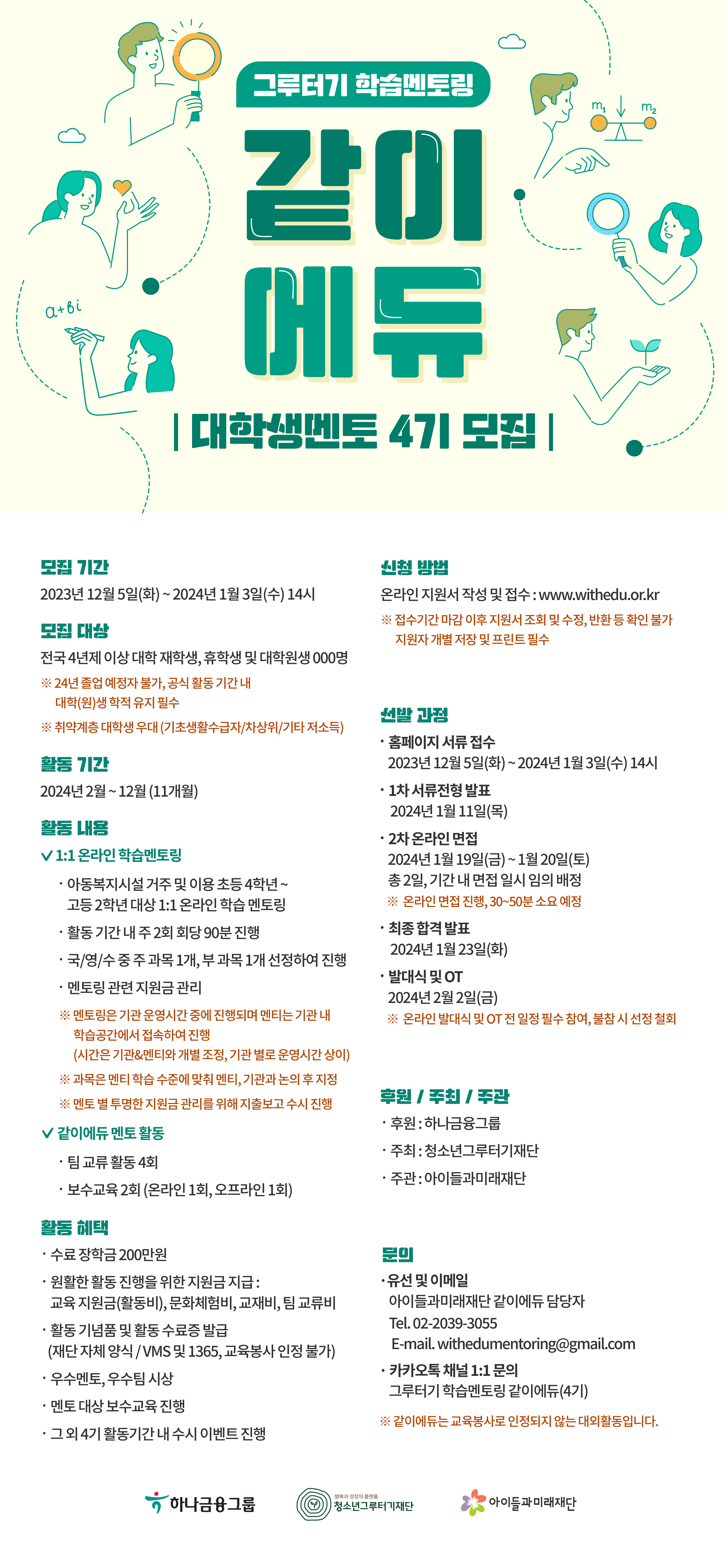| 제목 | 그루터기 학습멘토링 같이에듀 4기 대학생 멘토 모집 안내 | ||||