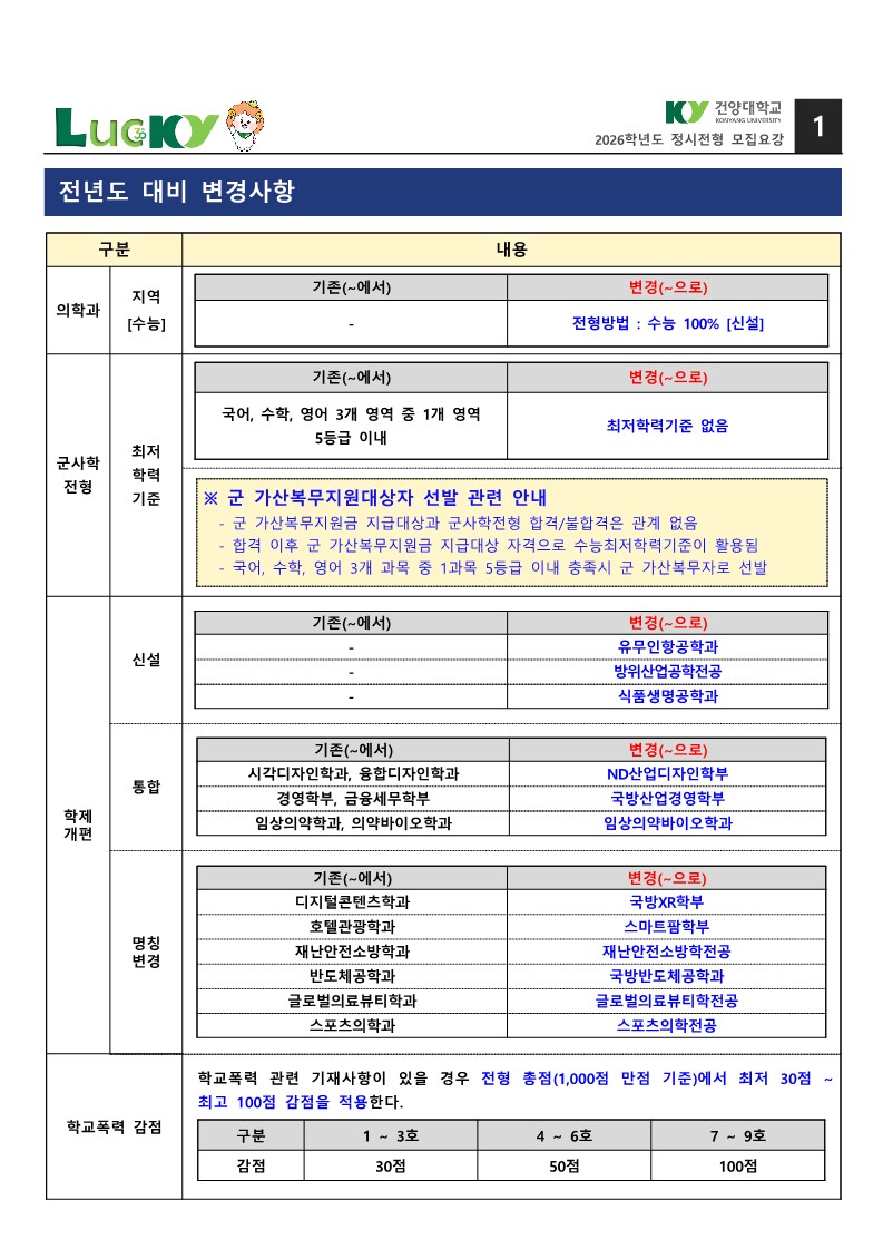 전년도 대비 변경사항에 대해서 안내드립니다. / 2026학년도 정시 모집요강 기준