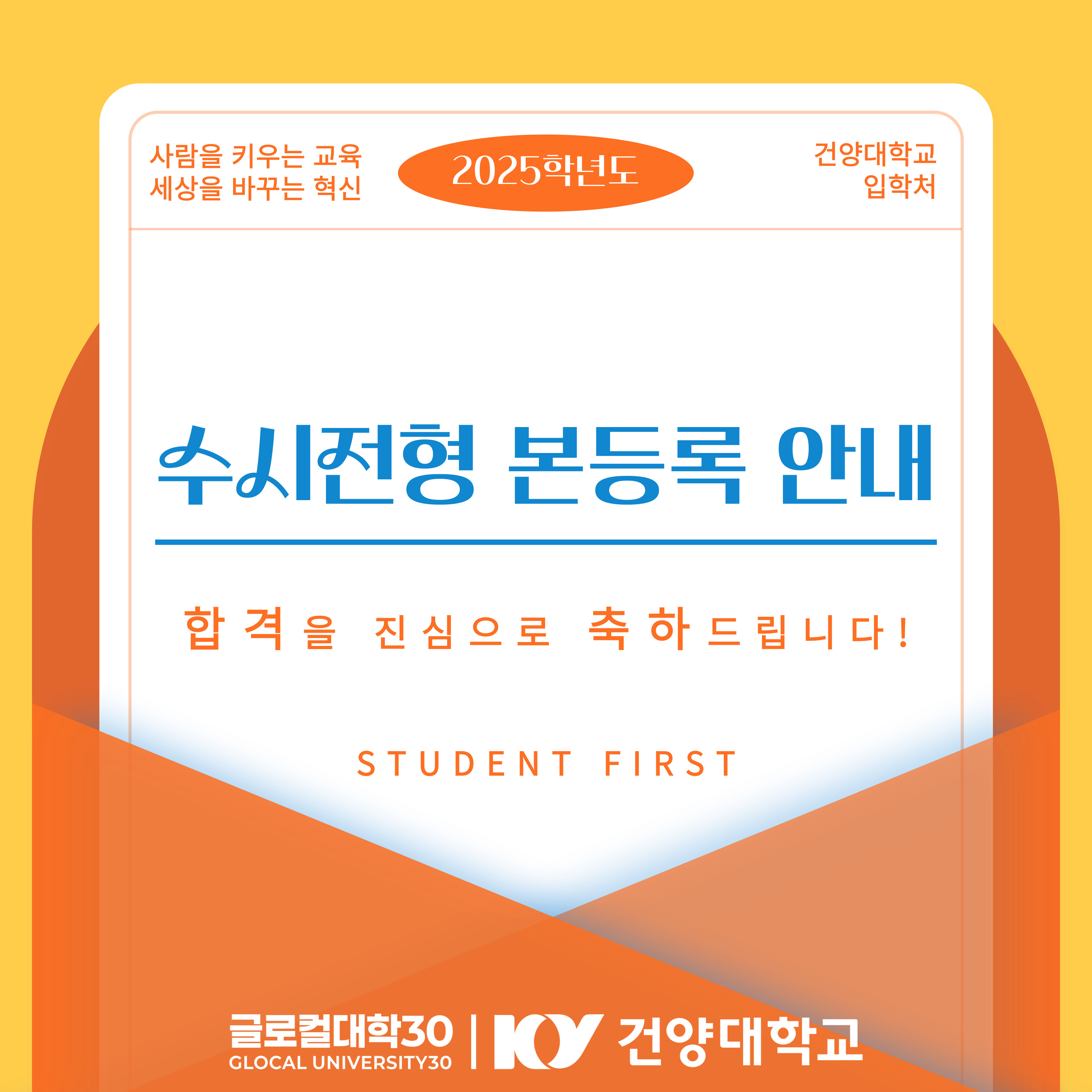 『 2025학년도 수시전형 본등록 안내 』글의 상세내용을 확인하는 표로 제목, 부서명, 등록일, 조회, 첨부, 내용으로 나뉘어 설명합니다.
