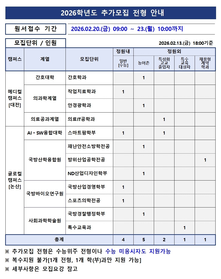| 제목 | 2026학년도 추가모집 모집요강 탑재 안내(2026.02.13) | ||||
