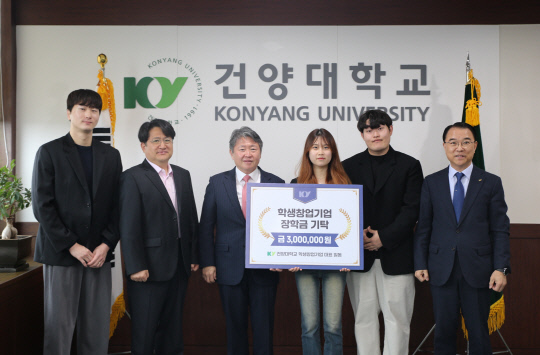 건양대는 재학 중 창업을 한 학생창업기업 대표 3명이 대학의 지원에 대한 감사의 의미로 후배들을 위한 장학금 300만 원을 기탁했다고 3일 밝혔다. 장학금 기탁은 호텔관광학과 3학년에 재학하며 학생창업기업 '논과산'을 설립해 '딸기양갱·밤양갱' 제품을 출시한 안지효 대표와 심리상담치료학과 4학년에 재학하며 학생창업기업 '늘20'을 창업해 '마늘 엑기스' 제품을 출시한 김상목·조영민 대표다. 학생들이 창업한 기업은 건양대 '산학연협력 선도대학(LINC3.0) 육성사업'의 지원을 통해 기업을 설립하고, 제품을 출시했다. 이들은 이날 오전 김용하 총장, 홍영기 산학협력단장, 신호준 창업교육센터장 등이 참석한 가운데 건양대 논산 창의융합캠퍼스 명곡정보관 총장실에서 장학금 기탁행사를 가졌다. 김용하 총장은 "학업과 기업 활동을 병행하며 성과를 창출해 나가고 있는 학생창업기업 대표들이 자랑스럽다"며 "앞으로도 이러한 선순환적인 사례들이 지속적으로 창출될 수 있는 창업교육 생태계를 위해 노력하겠다"고 밝혔다. 안지효 논과산 대표는 "학교로부터 받은 다양한 지원으로 이룬 성과를 통해 다시 학교에 환원할 수 있는 기회를 얻게 되어 매우 기쁘게 생각한다"고 말했다. |