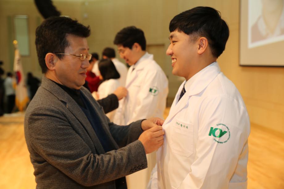 이날 화이트가운 세레모니는 학생뿐만 아니라 학부모 및 가족, 교직원 등 총 230여명이 모인 가운데 열렸으며 건양대 설립자인 김희수 이사와 건양대 이원묵 총장, 건양대병원 최원준 원장, 건양대 의대 박창교 학장 등도 참석했다.