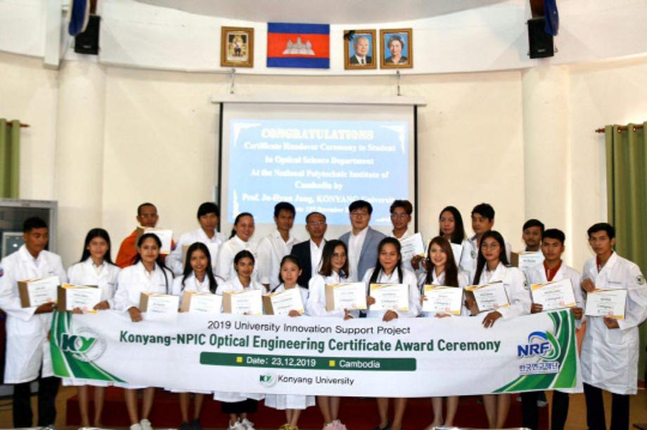 건양대에 따르면 건양대는 지난 2016년부터 캄보디아국립기술대학교(NPIC)와 함께 캄보디아 현지에서 운영해온 안경광학과 교육과정 결과 전문면허 취득자 48명을 배출했다.