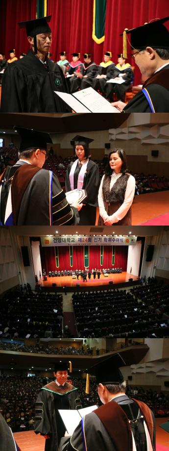 또한 건양대가 매년 학위수여식 때마다 자녀를 위해 헌신한 부모님의 노고를 기리기 위해 선정하는 신사임당상은 간호학과를 우수한 성적으로 졸업한 황예지 양의 어머니인 정차연 씨가 수상했다.