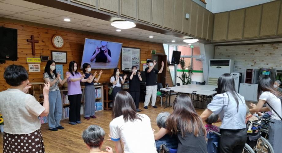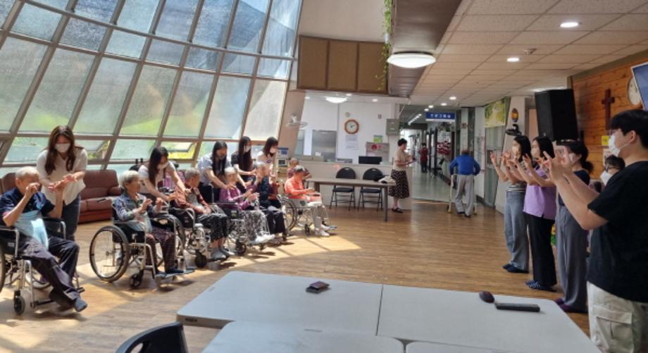 너싱홈 입소자들은 “평소에 즐겨 듣고 따라 불렀던 트로트에 맞추어 동작을 따라할 수 있어서 즐거운 시간이었다. 어려운 손동작이 있었지만 학생들이 친절히 가르쳐주니 금방 외울 수 있었다. 교육활동을 계획해주셔서 감사하다”라고 말했다.