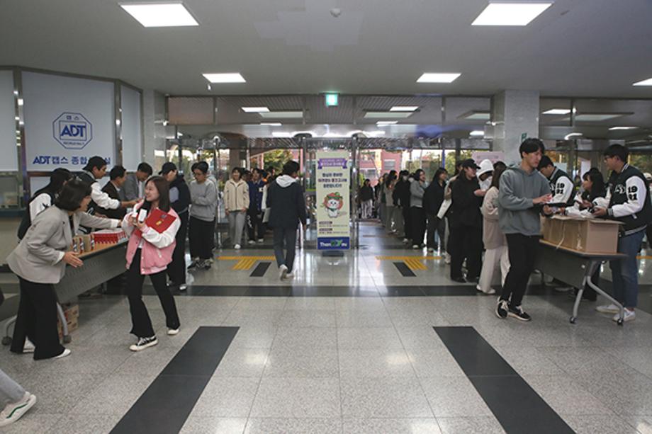 17일 오후 건양대 창의융합캠퍼스에서 진행된 중간고사 간식 이벤트에 학생들이 참여하는 모습 1.JPG