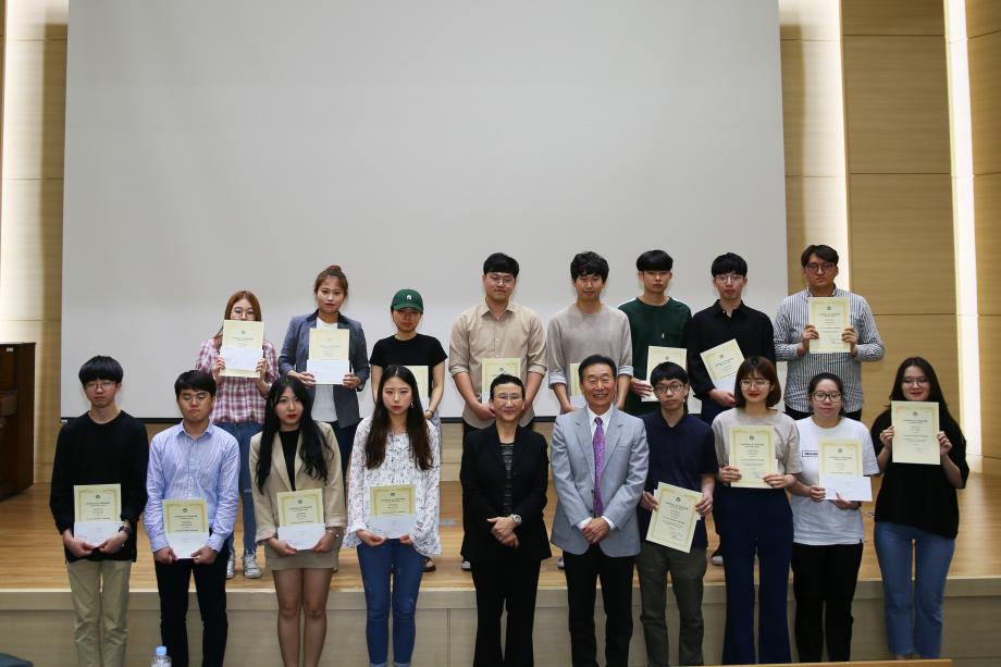 사토 요지 이사장(앞줄 오른쪽부터 다섯번째)이 장학금을 수여한 학생들과 함께 기념사진을~.jpg
