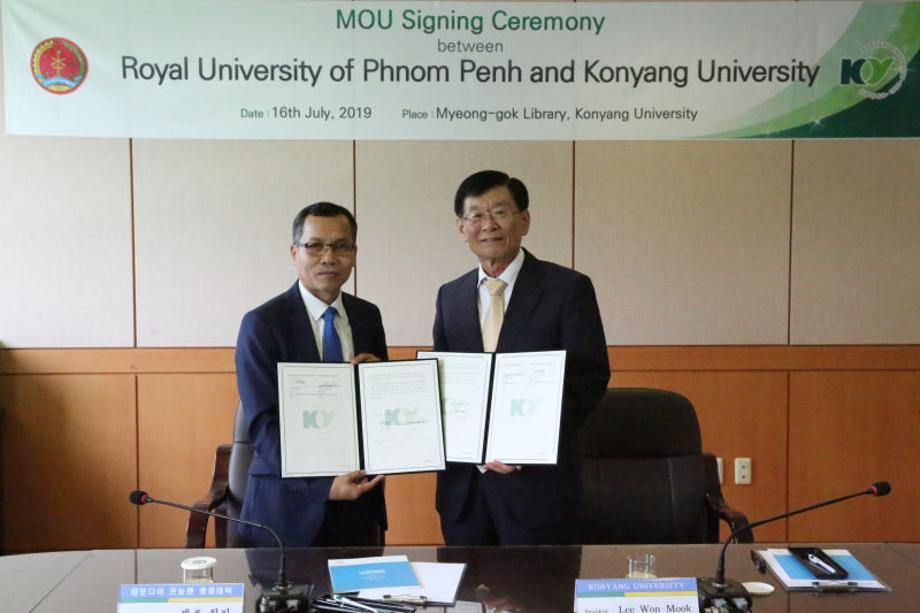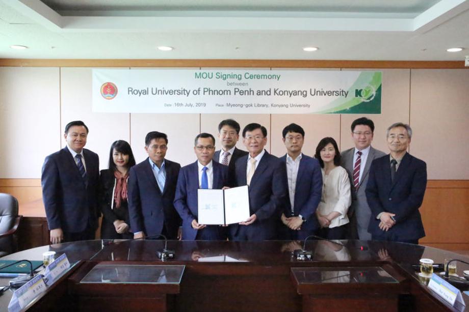 건양대, 캄보디아 프놈펜 왕립대학과 업무협약 체결 건양대학교(총장 이원묵)가 16일 오후 건양대 논산 창의융합캠퍼스에서 캄보디아 프놈펜 왕립대학과 학술교류를 위한 업무협약을 체결했다. 이원묵 건양대 총장과 체트칠리(Dr. Chet Chealy) 프놈펜대학 총장 등 양교관계자가 참석한 이번 협약식에서 양교는 △교환학생 △교환교수 및 직원 △교육 프로그램 △연구 개발 프로젝트 △학술활동 △문화교류 프로그램 운영 △단기 전문가 양성과정 등 7개 사항에 대한 업무협약을 체결했다. 이원묵 건양대 총장은 “프놈펜 왕립대학과 교류를 하게돼 기쁘다”며 “앞으로 지속적인 교류를 통해 우수 인재를 양성하는데 힘쓰겠다”고 말했다. 한편 프놈펜 왕립대학은 1960년에 개교해 현재 재학생 20,000여명을 대상으로 5개 단과대학과 26개 전공학과 및 외국어 센터를 운영 중이다. 외국어 센터에는 한국어교육과정이 설치되어 있다.