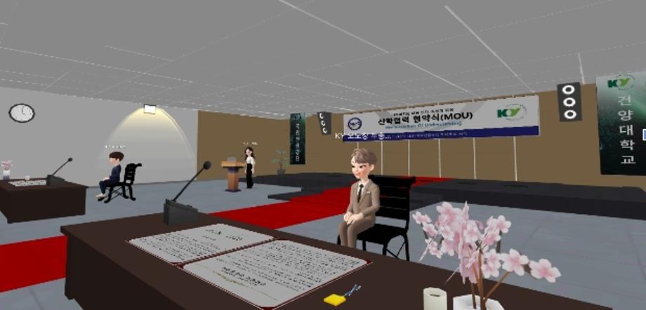 건양대와 국민연금공단이 메타버스 플랫폼을 활용해 업무협약을 진행하는 모습 1.jpg