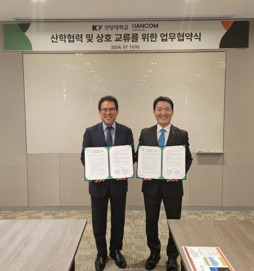 11일 건양대와 한컴라이프케어가 글로컬대학 협력 및 산학협력 모델 구축을 위해 업무협약을 체결하는 모습.jpg