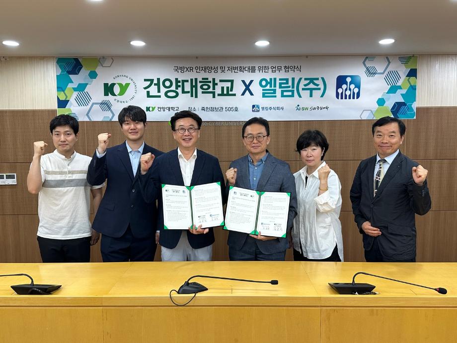 건양대학교(총장 김용하)는 2025년 7월 2일, 국방XR학과 신설에 발맞춰 이엘엔지니어링(주)와 업무협약(MOU) 및 예약기업 협약을 체결하며 실무 중심의 국방·디지털 융합 인재 양성에 나섰다.