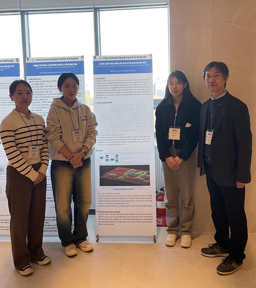 이소향, 유진, 박혜인 등 학부생으로 구성된 인공지능학과 산학공동 기술개발과제 연구팀은 삼성병원 IRB 기준에 맞추어 20대 학생들의 행동특성에 맞는 뇌파신호 측정 및 시각화에 기여한 공로로 이번 논문상을 수상했다.