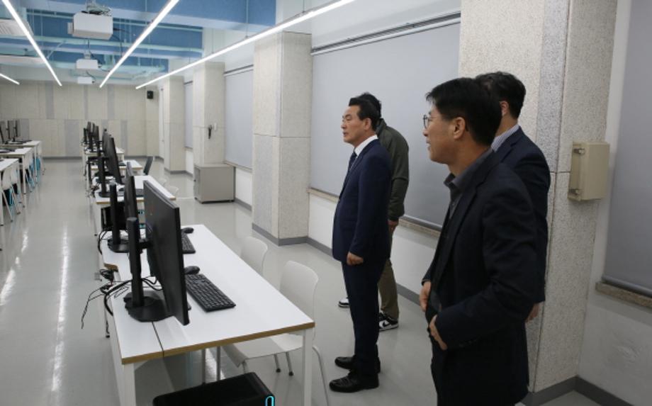 [꾸미기]25일 건양대 반도체공학과를 방문한 백성현 논산시장이 교육시설을 둘러보는 모습.JPG