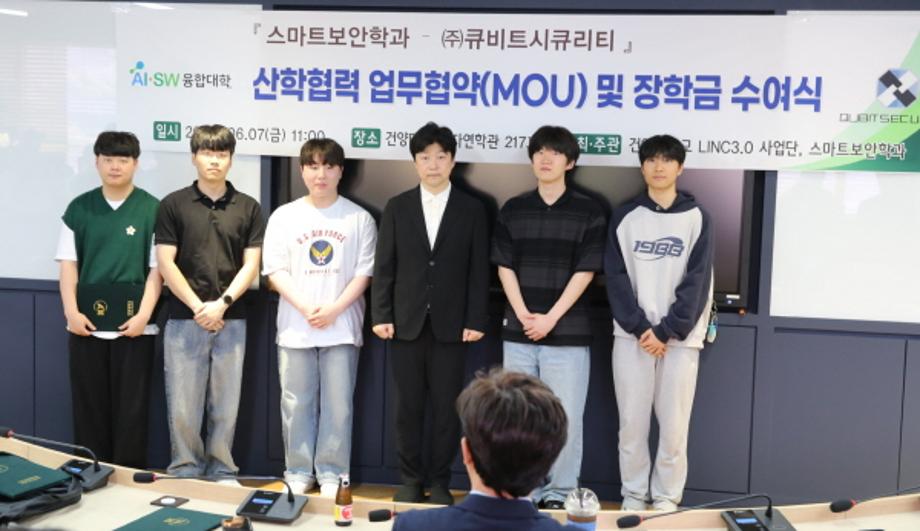 이날 협약식에서는 “큐비트인재 채용연계形 프로그램”에 참여하는 스마트보안학과 재학생 5명에게 AI·SW융합대학장 장학증서 수여식도 함께 진행됐다.